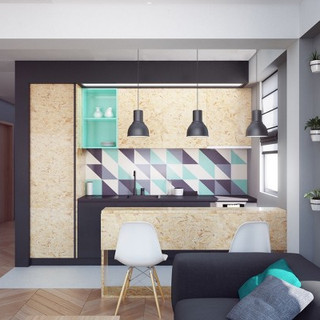 Enquanto o próximo projeto muda o tom da cor, certamente há semelhanças em seu design com o projeto anterior.Móveis baixos fazem com que o espaço tenha um ar de amplitude, dando a ilusão de tetos mais altos, enquanto armários abertos acrescenta, você adivinhou, a abertura. E não importa o tamanho do espaço, um pouco de vegetação nunca faz mal. Plantas empoleiraram-se em uma parede da casa dá um brilho natural.